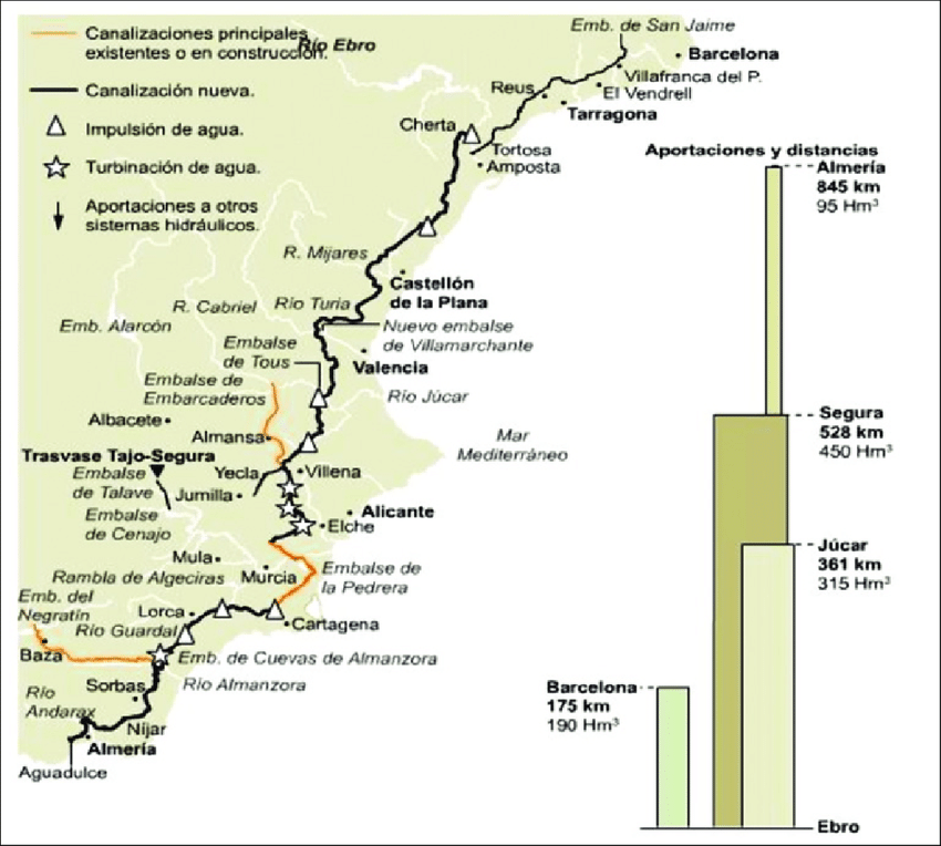 El principal proyecto del Plan de 2001 era el trasvase del Ebro, un proyecto para transferir agua desde la cuenca del Ebro a Castellón, Valencia, Alicante, Murcia y Almería. Cuando Zapatero llegó a la Moncloa en 2004, derogó el trasvase del Ebro. Y con el trasvase se fue también la financiación europea del plan completo. Volvemos al punto 0
