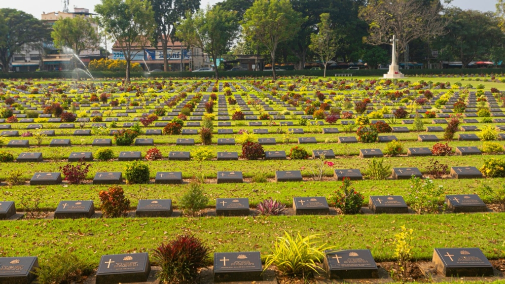 El cementerio de guerra de Kanchanaburi, cercano al puente, alberga las tumbas de prisioneros aliados. Jóvenes soldados, muy jóvenes. Paseas entre las lápidas y lees los epitafios, las edades… 21, 23, 24 años. Soldados británicos, australianos, holandeses. Católicos, protestantes y judíos, enterrados a miles de kilómetros de sus patrias. Cada año, familiares y supervivientes se recorren medio mundo para visitarlos.