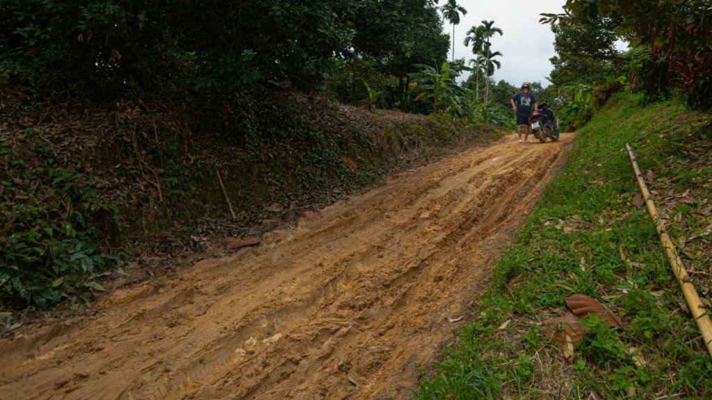 En nuestra búsqueda de lugares dignos de ser recordados nos metemos por trochas infames y embarradas que nos obligan a empujar las motos. Nuestro señalamiento como dangerous people por la empresa de alquiler está cada vez más cerca, aunque al final no cruzamos la línea roja.
