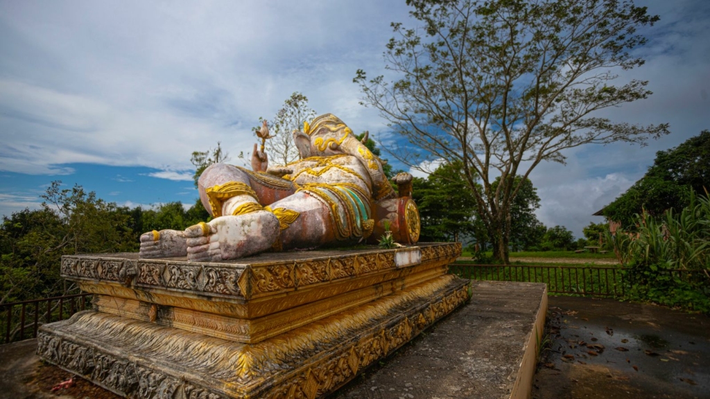 En el interior montañoso de la isla hay un centro budista decrépito y alicaído, con un Buda aburrido y una estatua de Ganesha, el elefante hijo de Shiva y Parvati, dios de la sabiduría y removedor de obstáculos. No parece que remueva muchos. La pintura que lo viste está desconchada y moteada de moho, como si los obstáculos le hubieran ganado la partida. En todo caso, las vistas desde allí son esplendorosas.